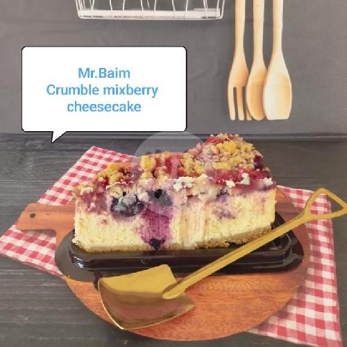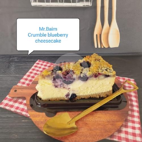 Terbuat Dari Cream Cheese Berkualitas, Telur, Cream Dan Crumble Biskuit Kemudian Di Oven Lalu Di Beri Toping Selai Bluebery.