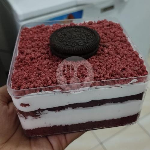 Dengan Cake Red Velvet Yang Lembut Di Lapisi Cheese Cream Dan Wipe Cream, Dengan Taburan Crumb Red Velvet Dan Toping Biskuit Oreo.