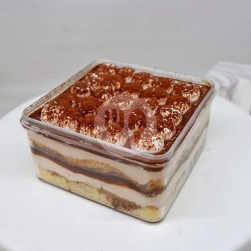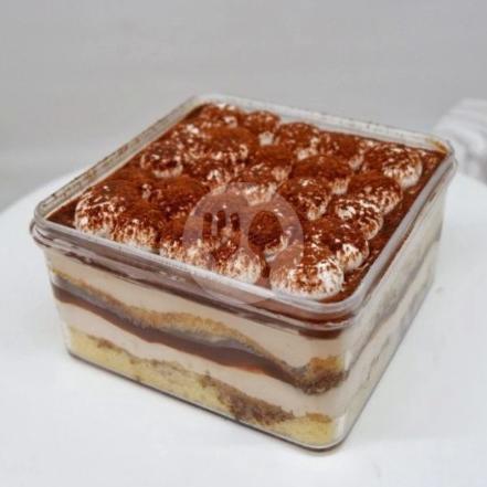 Dessert Box Gabin Tiramisu Dengan Aroma Kopi Dan Cream Keju Dengan Taburan Cocoa Powder Di Atas Nya, Lezat Dan Nikmat.