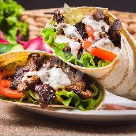 Kebabdengan daging sapi Sahara olahan asli dengan campuran sayuran segar + Bombay (jika minat