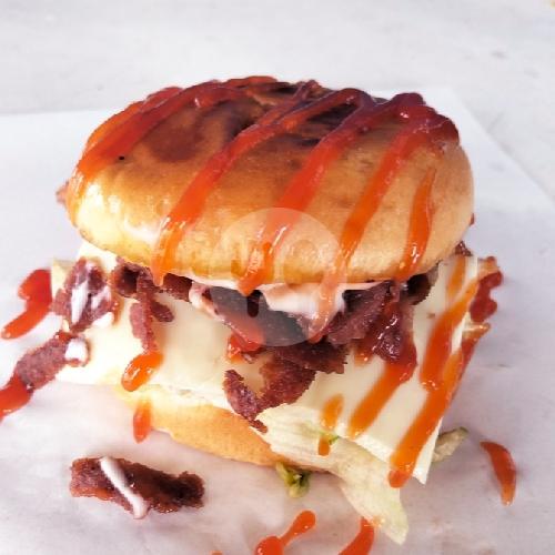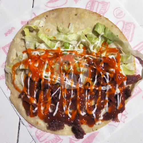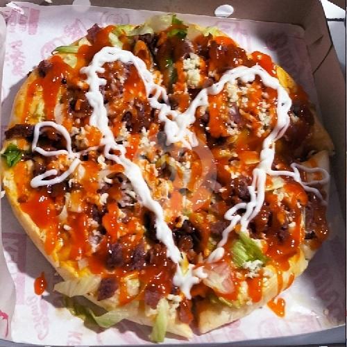 Roti Dough Dengan Campuran Daging Dan Sosis, + Sayuran Segar Dengan Balutan Lelehan Keju Mozarella