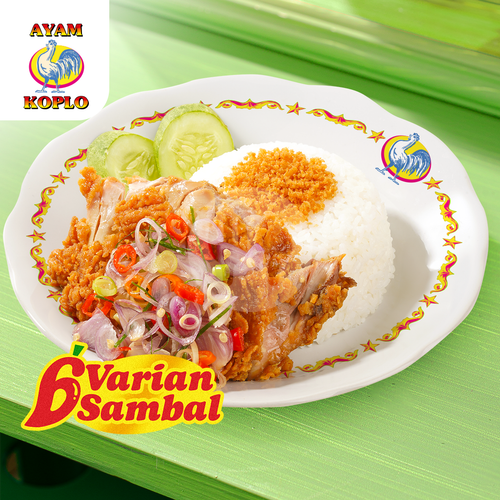 Ayam Goreng Bumbu Soto Koya dan Perasan Jeruk Nipis. Termasuk Nasi & Sambal