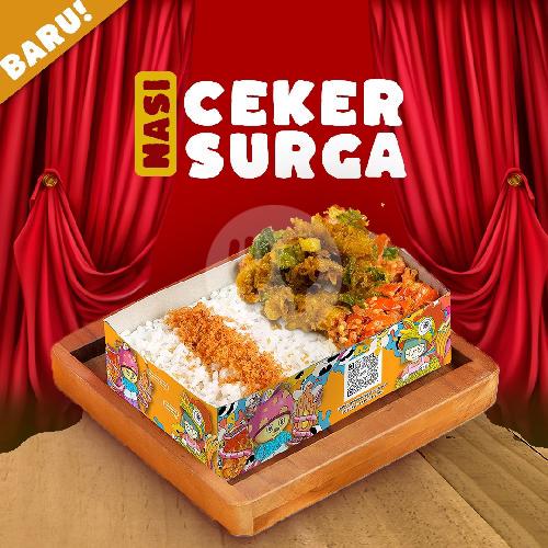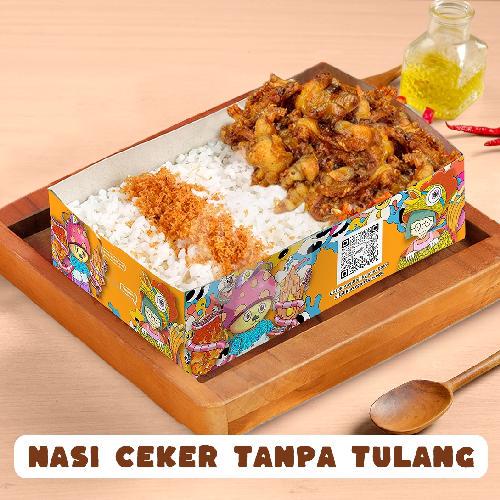 Nasi dipadukan dengan Ceker Tepung Daun Bawang Khas Nusantara serta topping serundeng/kremes/bayam crispy dan sambal bawang