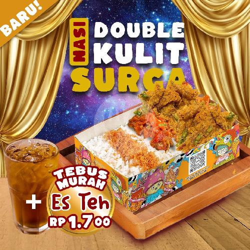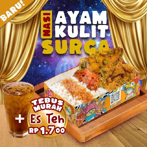 Nasi kulit dipadukan dengan ayam, serundeng/kremes serta sambal + Es Teh