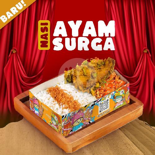 Nasi dipadukan dengan Ayam dan Kulit Tepung Daun Bawang Khas Nusantara serta topping serundeng/kremes/bayam crispy dan sambal bawang