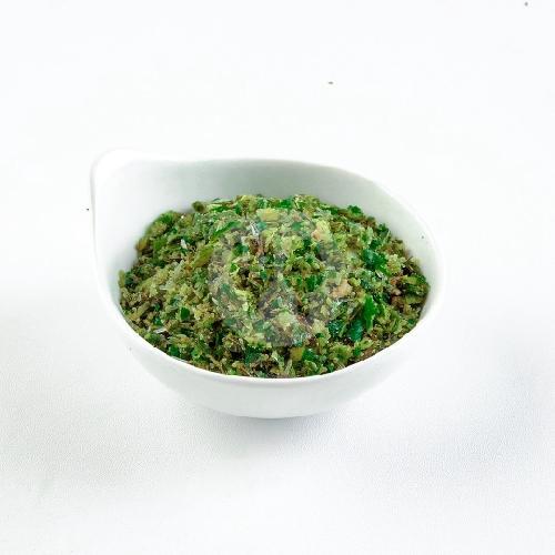 Nasi dipadukan dengan Paru Tepung Daun Bawang Khas Nusantara serta topping serundeng/kremes/bayam crispy dan sambal bawang