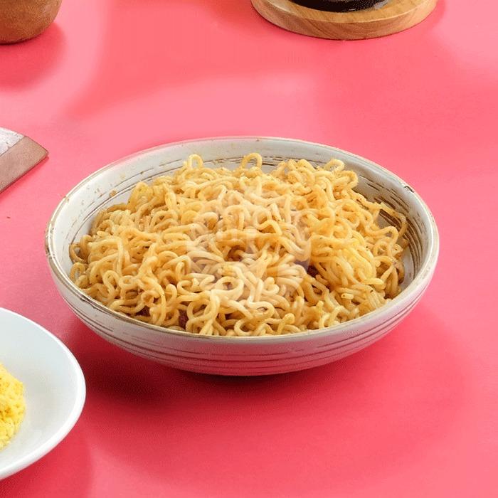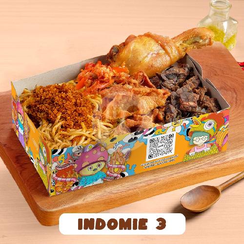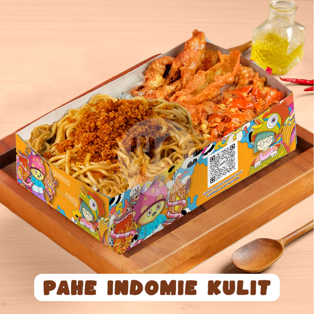 Indomie dipadukan dengan Kulit, Serundeng/Kremes, Serta Sambal