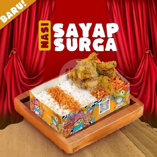 Nasi dipadukan dengan Sayap Tepung Daun Bawang Khas Nusantara serta Topping Serundeng/ Kremes / Bayam Crispy dan Sambal Bawang