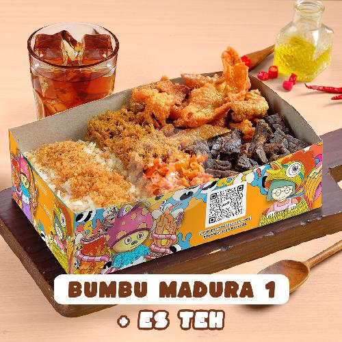 Nasi Bumbu Madura + Kulit + Paru + Ayam + Serundeng/Kremes + Sambal