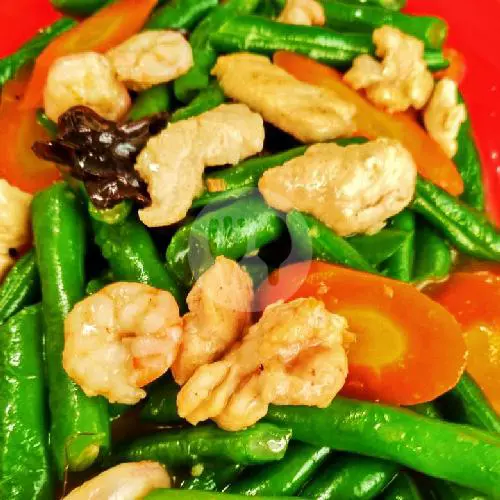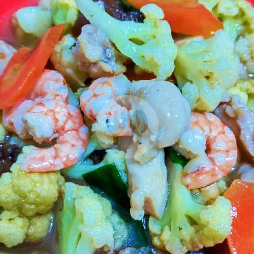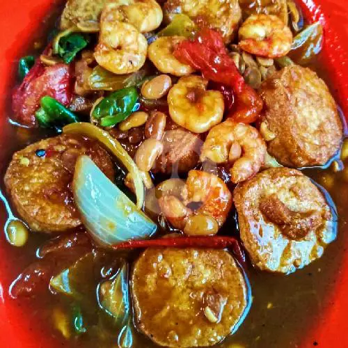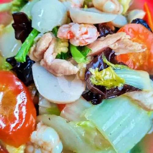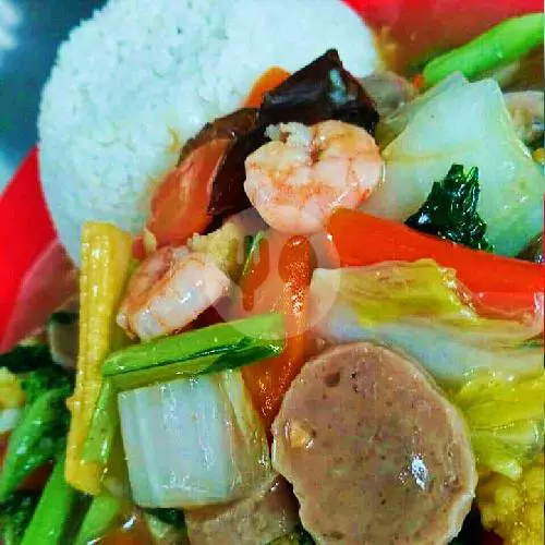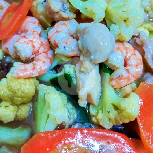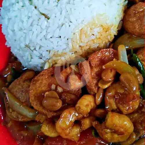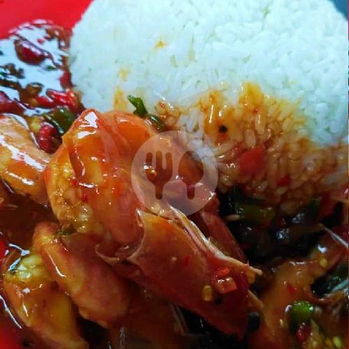Nasi + lauk saos rica rica, pilihan dori / udang / cumi / ayam