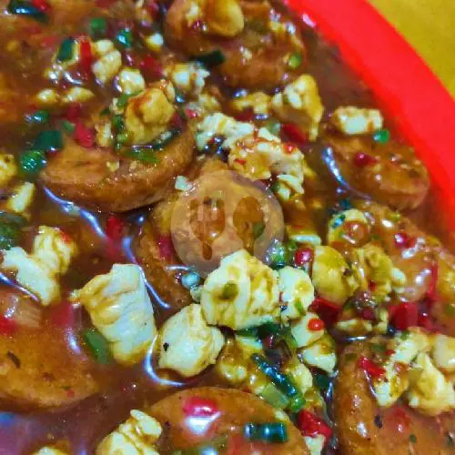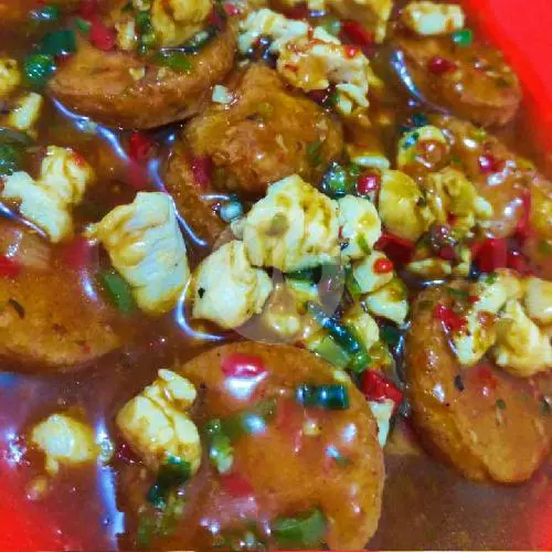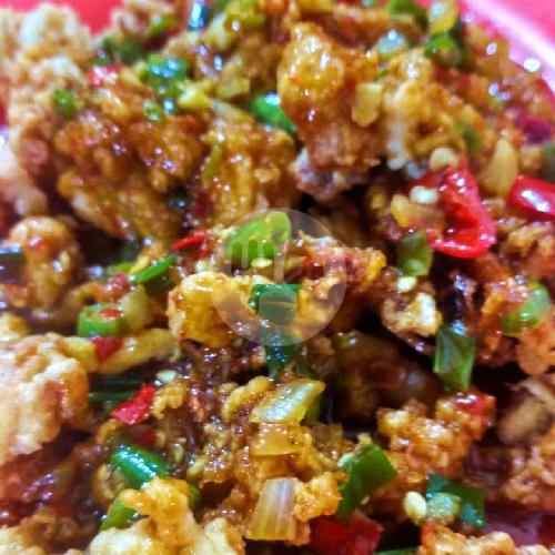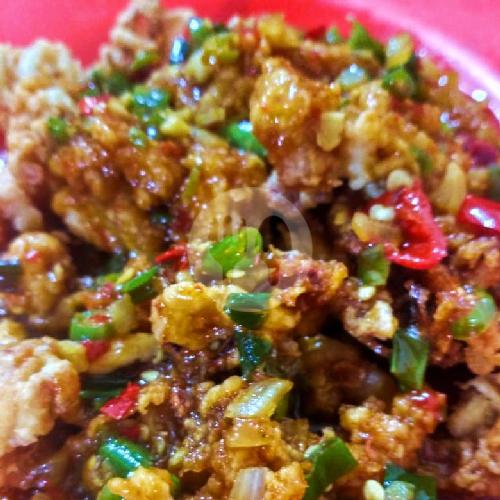 Cumi goreng tepung dengan saos pedas dan irisan cabe
