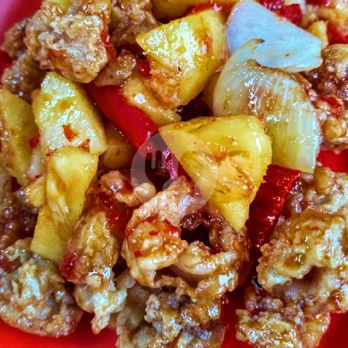 Cumi goreng tepung dengan saos Thai dan nanas segar
