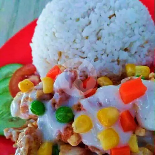 Nasi + lauk saos mayonaise, pilihan antara dori / cumi / ayam