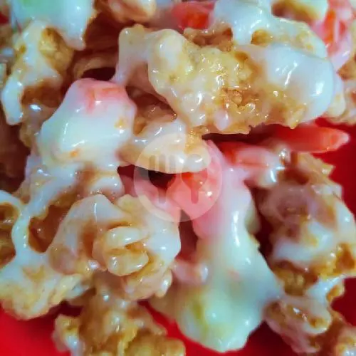 Udang goreng tepung dengan saos pedas dan irisan cabe