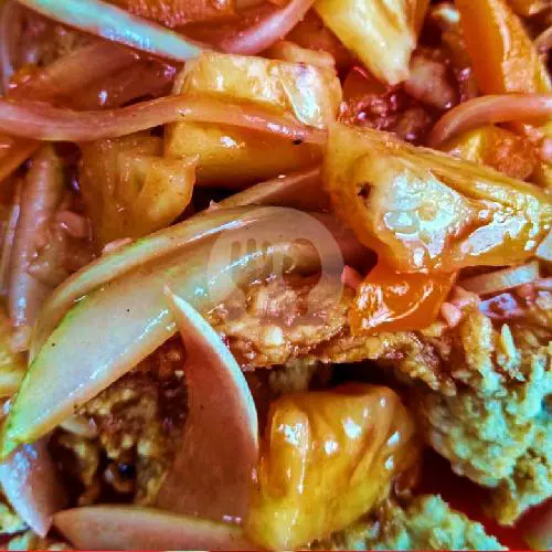 Ayam katsu dengan saos thai pedas dan toping mangga muda segar