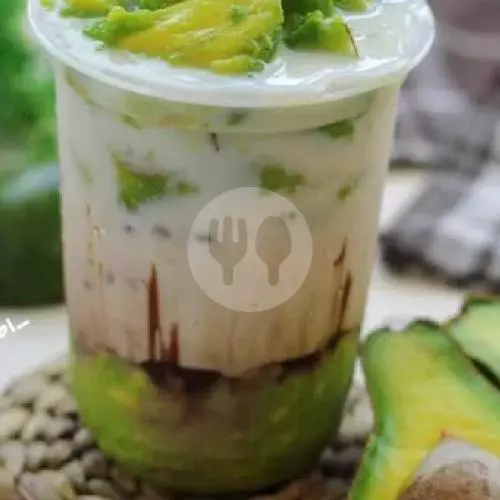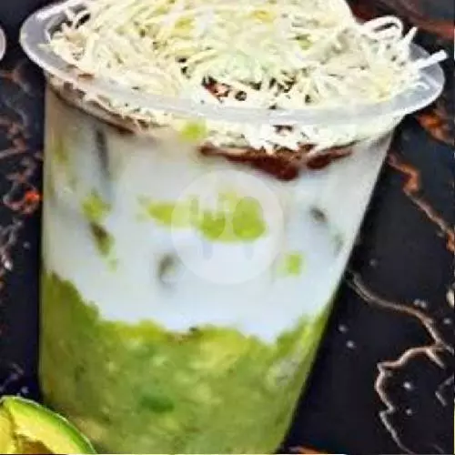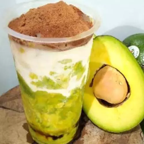 Alpukat mentega, keju, gula murni, susu putih, cokelat, es batu kristal