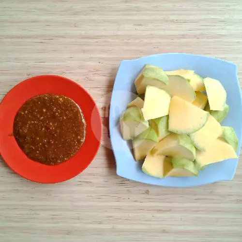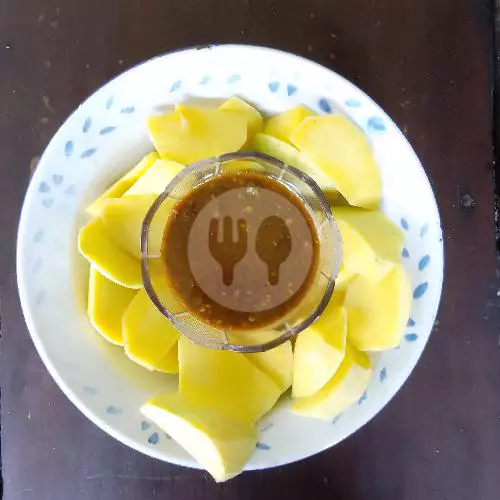 Rujak Kedondong Segar Dengan Sambal Gula Merah Kacang Dan Bumbu Tradisional Di Ulek Dadakan Dengan Goyangan Tangan