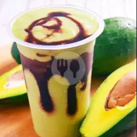 Alpukat mentega, milo, gula murni, susu putih, cokelat, es batu kristal