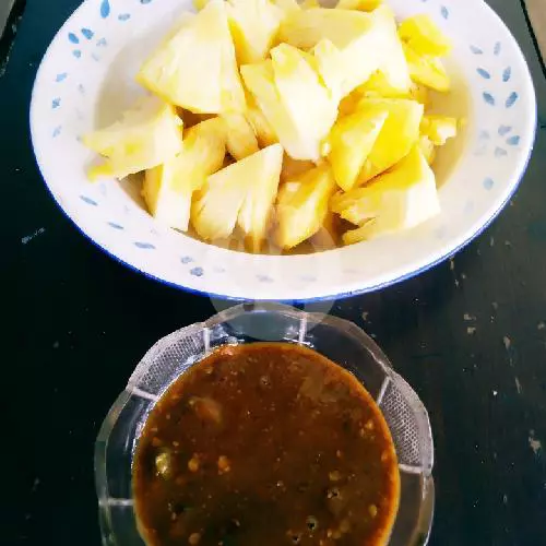 Nanas Segar Sambal Gula Merah Kacang Dan Bumbu Tradisional Di Ulek Dengan Goyangan Tangan