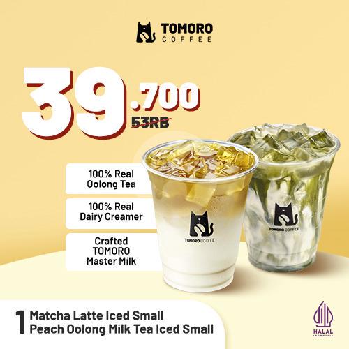 1 Peach Oolong Milk Tea Iced Small + 1 Matcha Latte Iced Regular