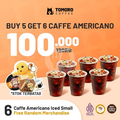 6 Caffe Americano Iced Small + Get Free 1 Random Merchandise *Stock terbatas, selama persediaan masih ada.