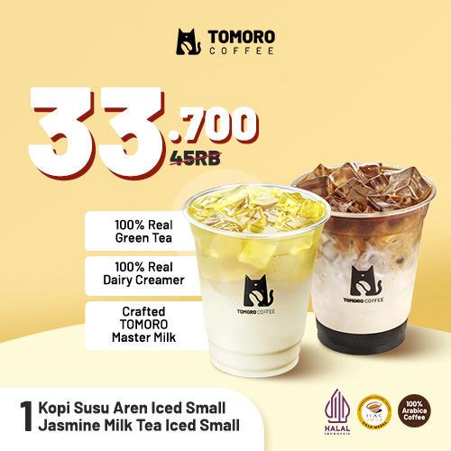 1 Jasmine Green Milk Tea Iced Small + 1 Kopi Susu Aren Iced Regular