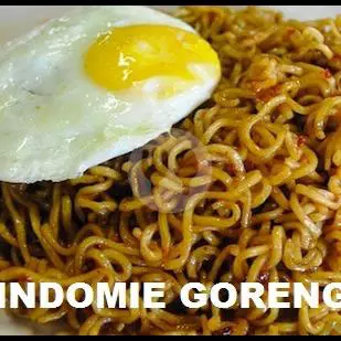 Indomie Goreng Ditumis dengan telor dan bakso dan sosis Tambah Kerupuk