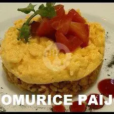 Nasi, sosis, bakso, sayuran di campur telor orak arik setengah matang Tambah Kerupuk