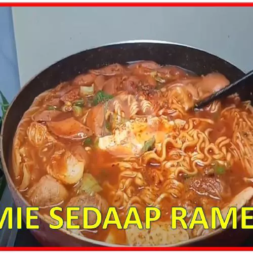 Mie Sedap korean Selection dengan telor, bakso dan sosis Tambah Kerupuk