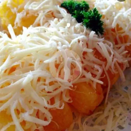 Pisang panggang dengan toping keju, coklat Dan Susu