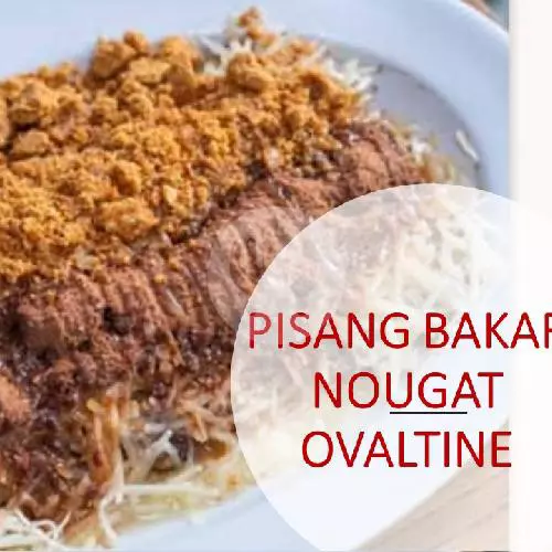 Pisang Bakar dengan toping keju, kacang sangrai, ovaltine Dan Susu