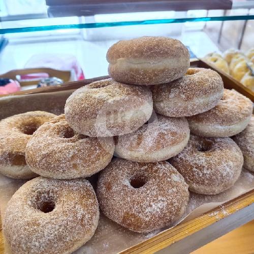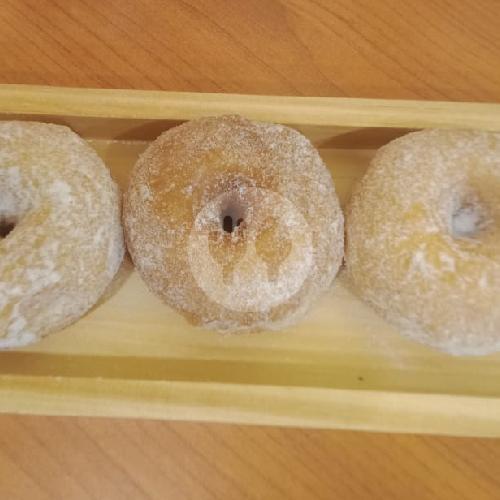 Donat manis dengan taburan gula halus, lembut dan kenyal.