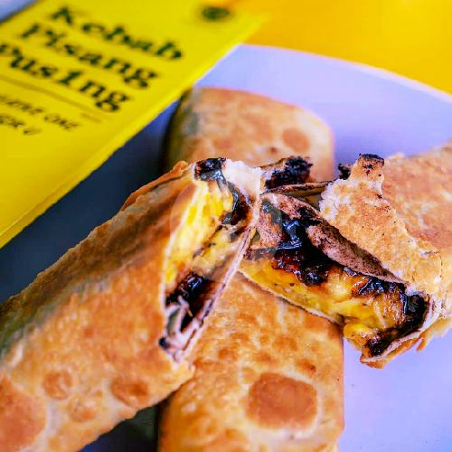 kebab dengan isian sosis + sayuran + pilihan saus dengan cara tulis di catatan request (barbeque,lada hitam,tomat,extra pedas)