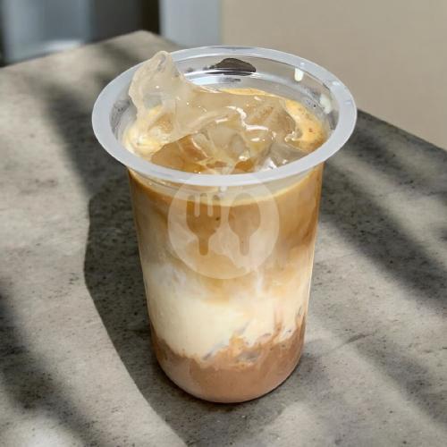 espresso,fresh milk,Simple syrup.Menggunakan Beans Arabica Blend