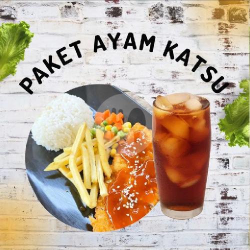 Es Teh, Nasi, Ayam Katsu, Kentang Goreng, Sayur Mix, Saus Lada Hitam