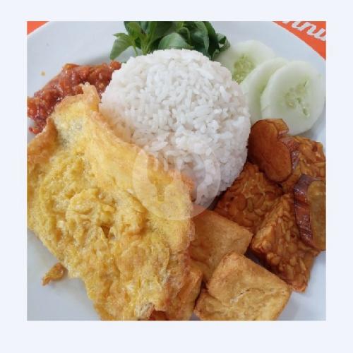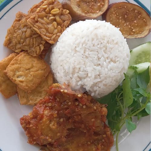 Nasi Putih, Telur Dadar, Tempe,tahu,terong, Lalapan, Sambel
