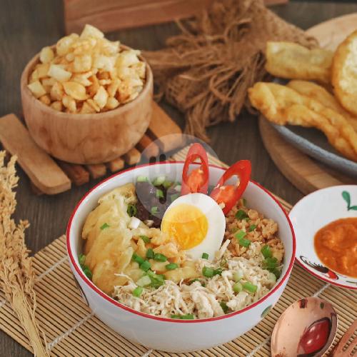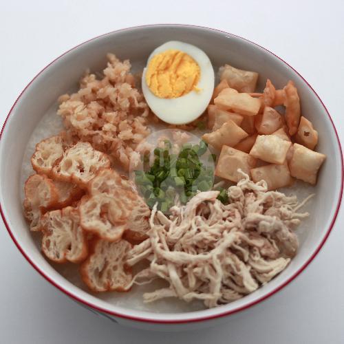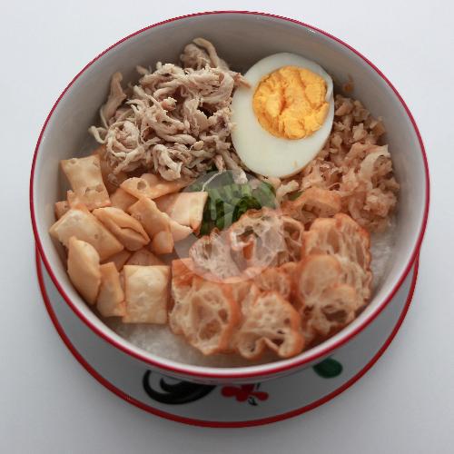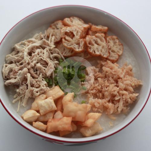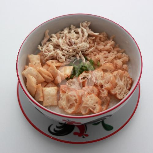 Bubur Ayam Porsi 2x, Ayam Suir, Cakwe, Caipo,kripik Pangsit, Daun Bawang Kecil