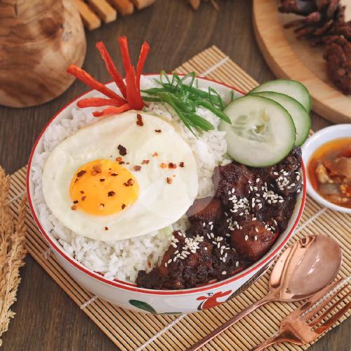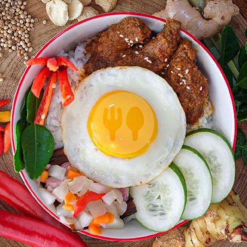 Nasi Putig Dan Rendang Sapi Ala Peng Serta Tambahan Telur Ceplok