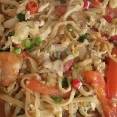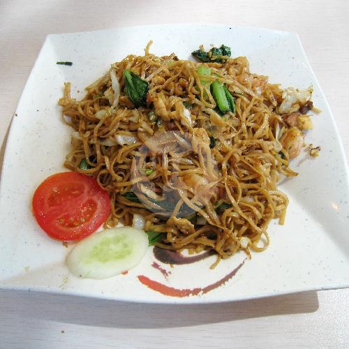 Mie dengan campuran ayam. udang. cumi dan bakso.