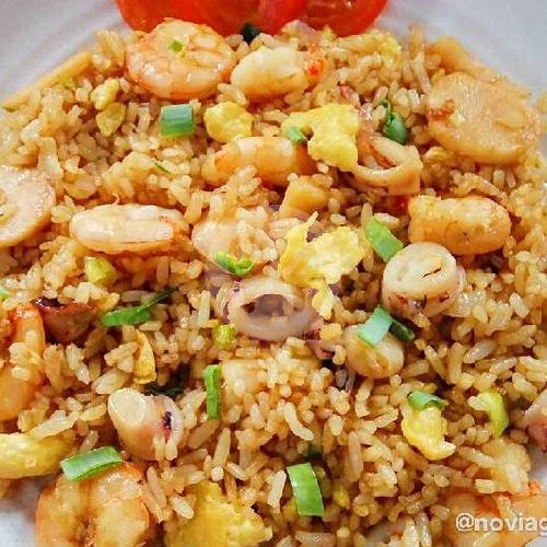Nasi goreng dengan isi cumi. udang. bakso dan ayam