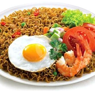 Mie dengan campuran ayam. udang. cumi dan bakso