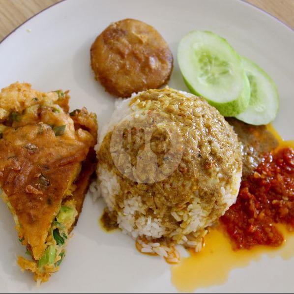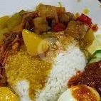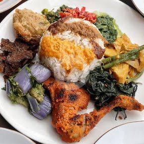 Nasi, Rendang, Sayur, Lalap, Buah, Sendok, Krupuk, Air Mineral