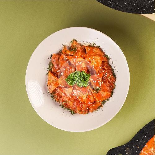 Walaupun Tampilannya Sangat Merah Tapi Tenang Saja Karena Rasanya Hanya Sedikit Pedas Dan Cenderung Manis Dengan Menggunakan Saus Ala Korea Terbaik Sehingga Sangat Aman Untuk Di Nikmati