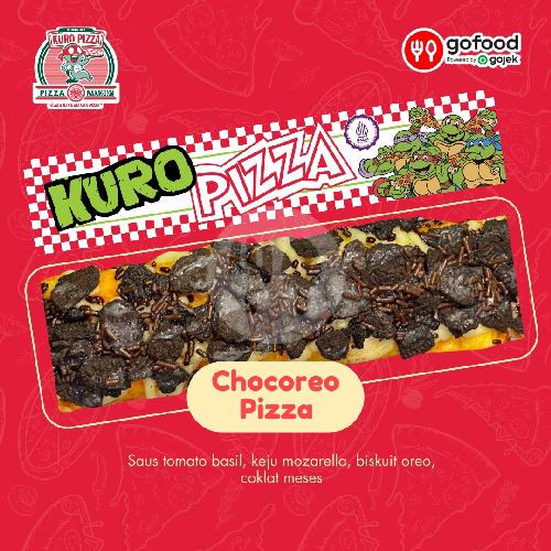 saos tomato basil, keju mozarella, biskuit oreo, coklat meses