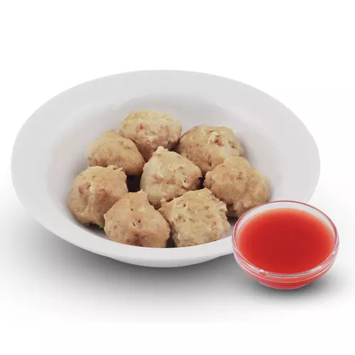 Olahan daging ayam berbentuk bola yang digoreng hingga renyah dan berwarna kecoklatan pada bagian luar, serta memiliki tekstur yang lembut pada bagian dalam dengan cita rasa yang gurih.
