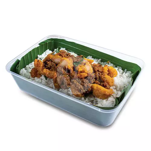 Nasi dengan ayam bumbu woku (pedas). *dapat dipesan dalam kondisi beku