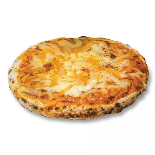 Pizza dengan toping 4 jenis keju (Mozzarella, Gouda, Cheddar Merah , Cheddar Kuning)
