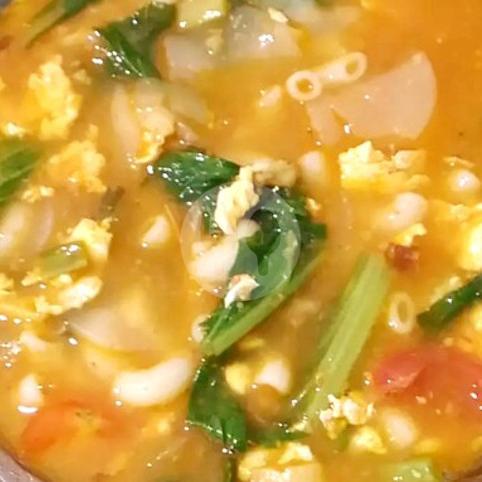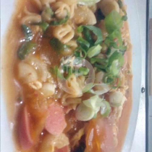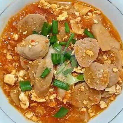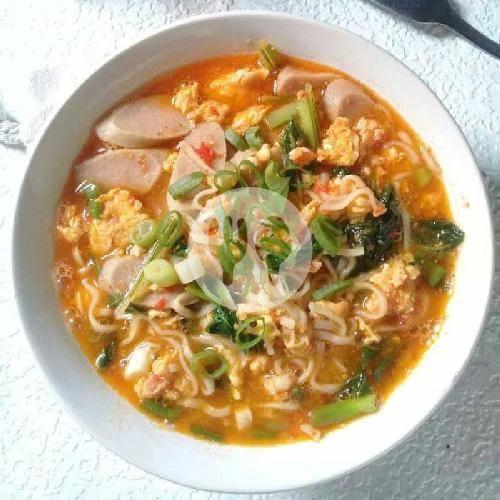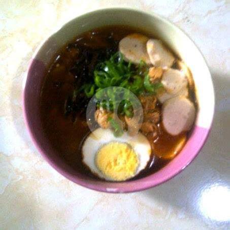 Mie kuah pedas dgn toping telur rebus sosis bakso jamur dan ayam
