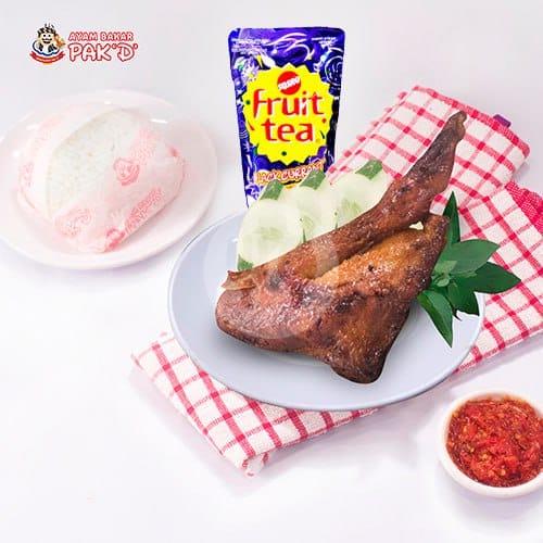 Nasi + ayam kampung + sambal + lalapan + Fruit Tea