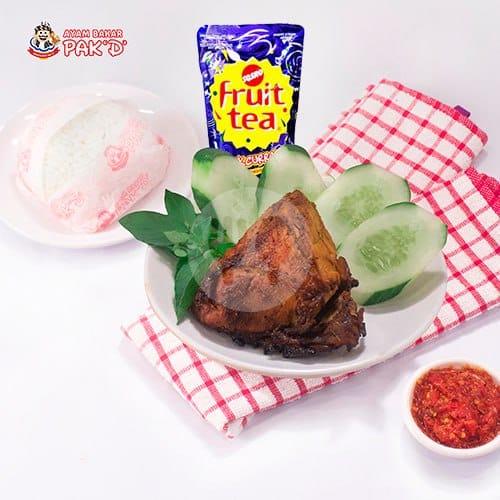 Nasi + ayam broiler + sambal + lalapan + fruit tea